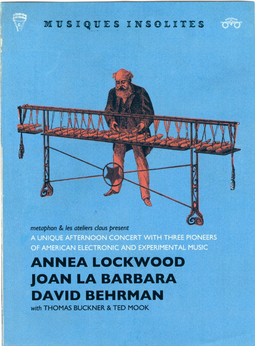 Daniel RothmanÕsmusical and visual preoccupations wander beyond the concert hall into eccentric spaces and timescales both smaller and larger than life, such as the miniature The Dandelion Clock (with Andrea Loselle, Ted Mook, and Daniel Tiffany), the immense Sense Absence (with Paul Tzanetopoulos and the Quatuor Bozzini), the pedestrian The Garden Party (with Zebra), or the virtual CŽzanneÕs Doubt (with Elliot Anderson, Jim Campbell, Tom Buckner, Kent Clelland, Ted Mook, David Smeyers, and Wadada Leo Smith). Yes, Philip, Androids Dream Electric Sheep, for a clarinet he modified to control signal processing makes contingent its acoustic life form, with a music incarnated through acoustic feedback tapping the ecology of biofeedback as a clarinet-organism manifests its environment: an aria for the man-machine.