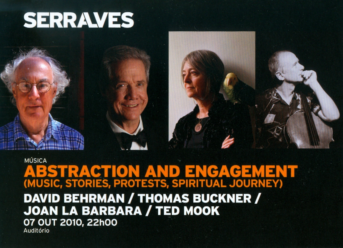 Announcing the premiere performances of Daniel Rothman’s Nothing Personal, in Berkeley CA on March 11th as a part of the Four Seasons Arts Series, and at Roulette, in NYC on April 12. Performers: Thomas Buckner, baritone, JD Parran, bass clarinet, Theodore Mook, cello.