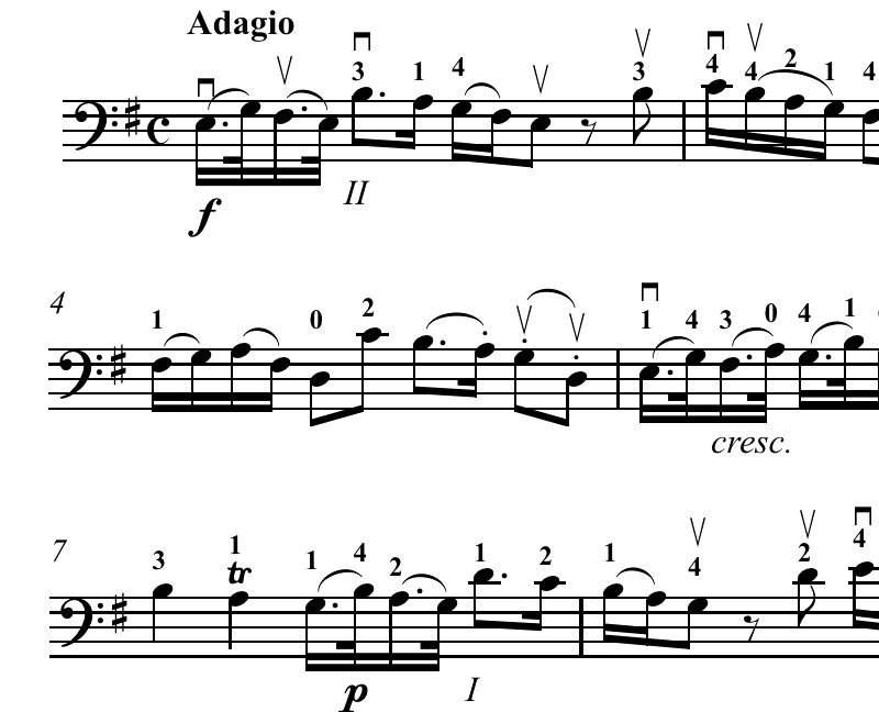 A short selection of a comprehensive library of exercises, scales and repertoire, edited with fingerings and bowings for the convenience of cello students.